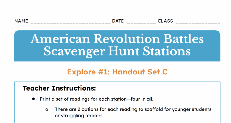 American Revolution Battles Scavenger Hunt Stations