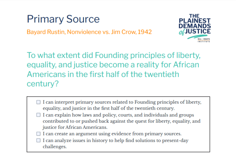 - What do you think would be a more effective way for Rustin to protest the law: using nonviolence as he describes here or fighting back? Explain your reasoning.