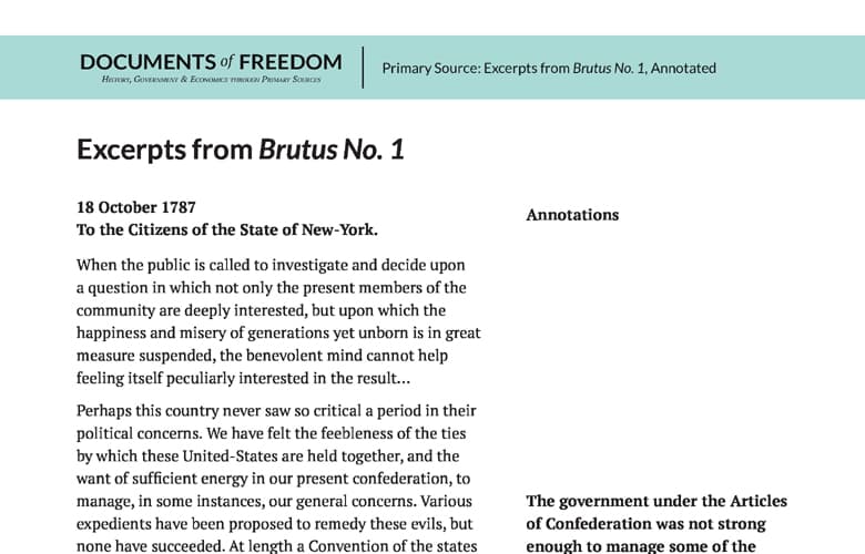 Primary Source: Brutus No. 1 Excerpts Annotated