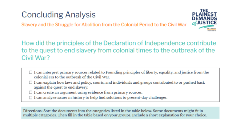 • I can explain how laws and policy, courts, and individuals and groups contributed to or pushed back against the quest to end slavery.