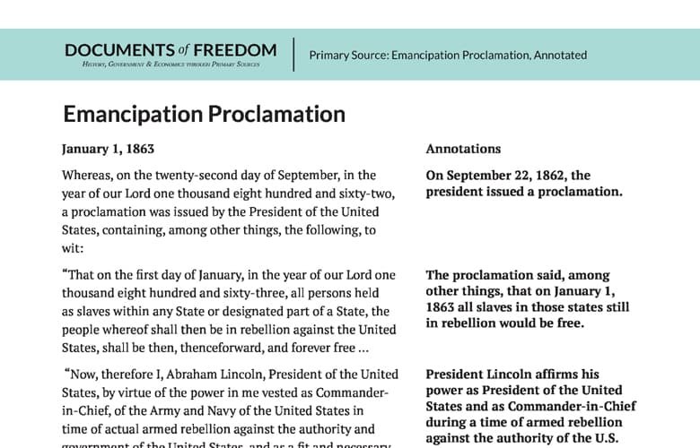 2The proclamation said, among other things, that on January 1, 1863 all slaves in those states still in rebellion would be free.