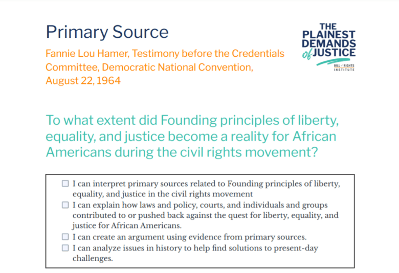 - I can interpret primary sources related to Founding principles of liberty, equality, and justice in the civil rights movement