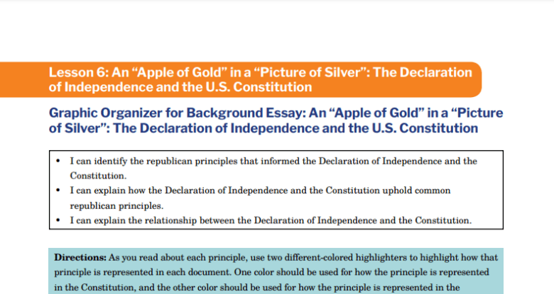 Graphic Organizer for Background Essay: An “Apple of Gold” in a “Picture of Silver”: The Declaration of Independence and the U.S. Constitution