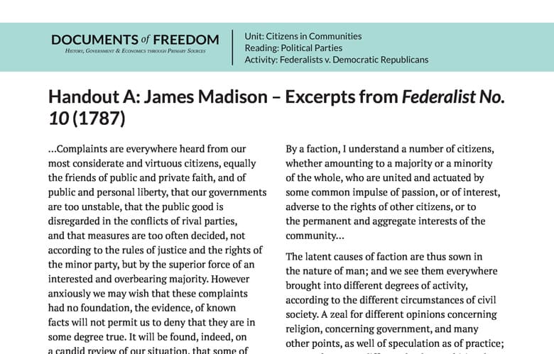 Handout A: James Madison – Excerpts from Federalist No. 10 (1787)