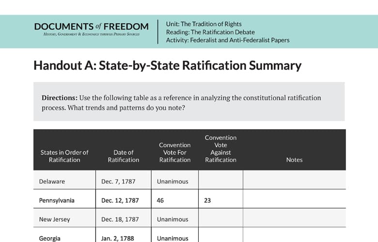 Handout A: State-by-State Ratification Summary – The Ratification Debate
