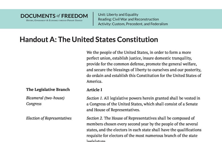 Handout A: The United States Constitution – Civil War and Reconstruction