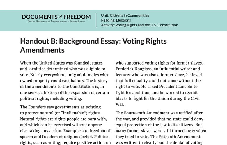 When the United States was founded, states and localities determined who was eligible to vote. Nearly everywhere, only adult males who owned property could cast ballots. The history of the amendments to the Constitution is, in one sense, a history of the expansion of certain political rights, including voting.