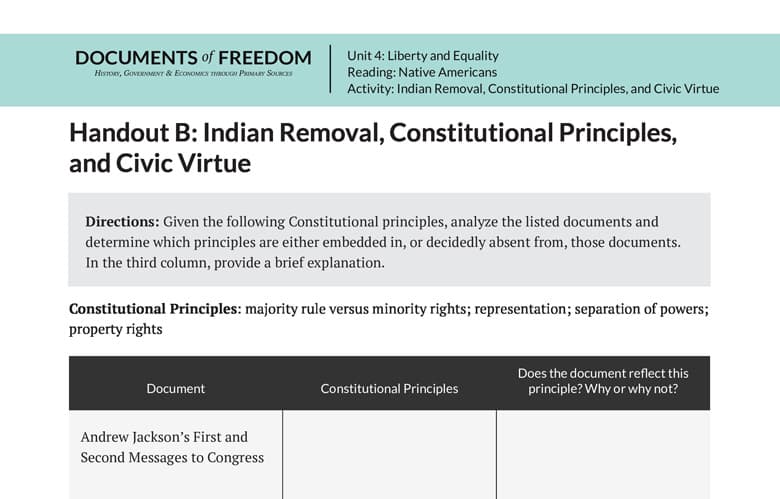 Handout B: Indian Removal, Constitutional Principles, and Civic Virtue