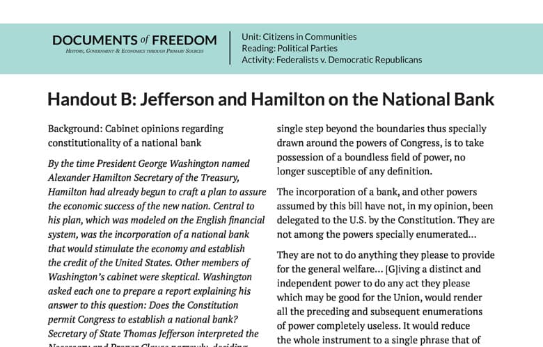 Handout B: Jefferson and Hamilton on the National Bank