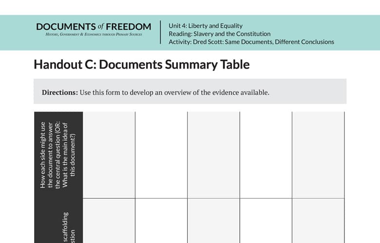 | Document name & date | Answers to questions on documents. | How each side might use the document to answer the central question (OR: What is the main idea of this document?) |