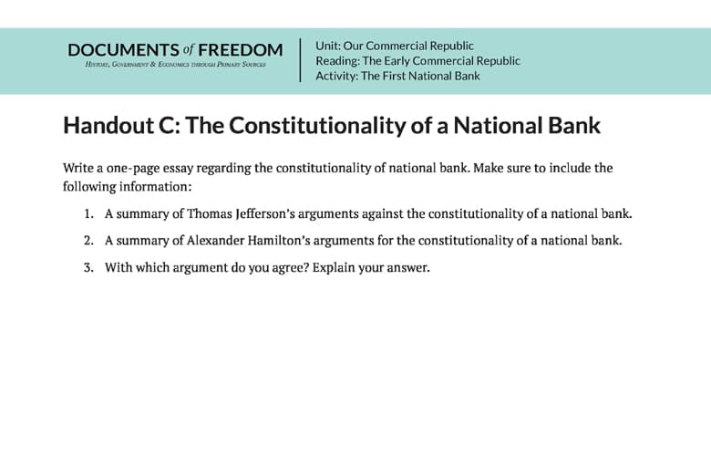 Handout C: The Constitutionality of a National Bank