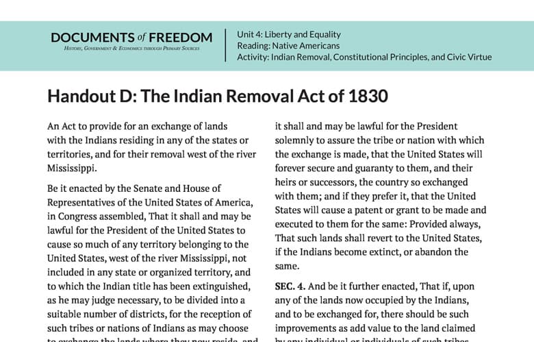 Handout D: The Indian Removal Act of 1830