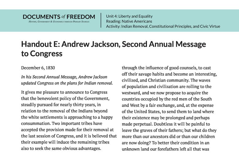 Handout E: Andrew Jackson, Second Annual Message to Congress