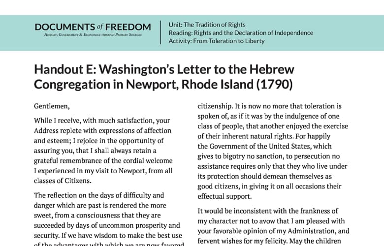 Handout E: Washington’s Letter to the Hebrew Congregation in Newport, Rhode Island (1790)