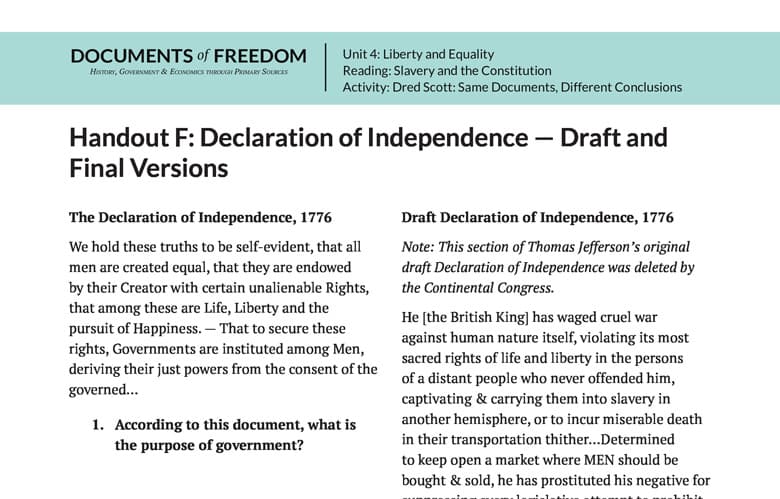 Handout F: Declaration of Independence Draft and Final Version