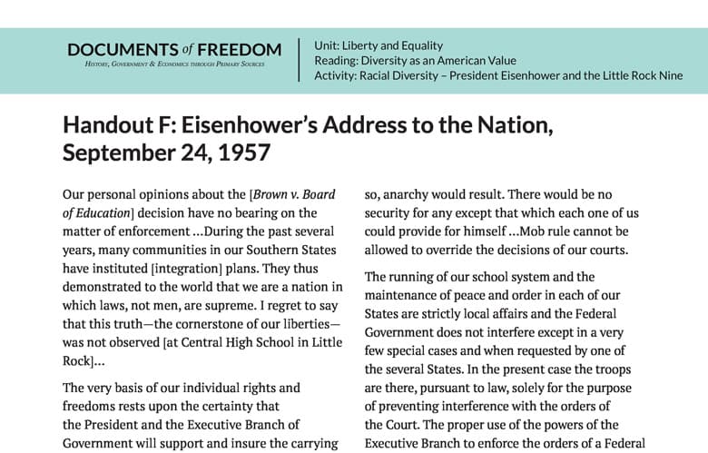 Handout F: Eisenhower’s Address to the Nation, September 24, 1957