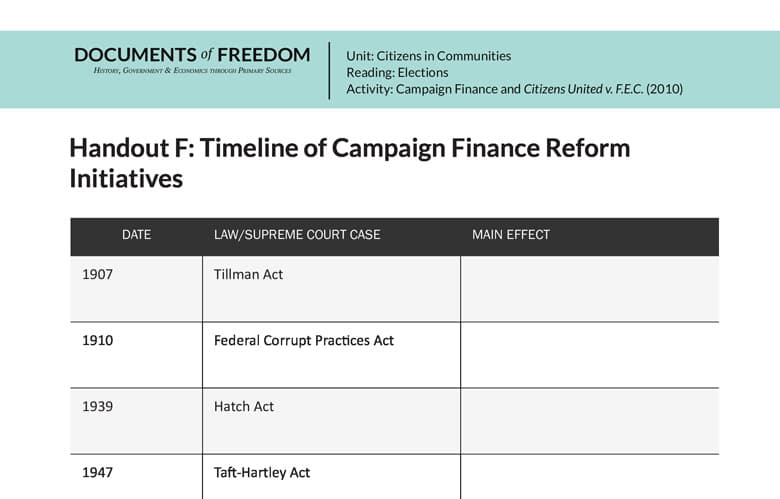 Handout F: Timeline of Campaign Finance Reform Initiatives
