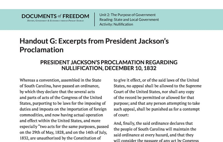 PRESIDENT JACKSON’S PROCLAMATION REGARDING NULLIFICATION, DECEMBER 10, 1832