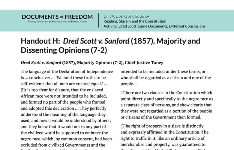 Handout H: Dred Scott v. Sanford (1857), Majority and Dissenting Opinions (7-2)