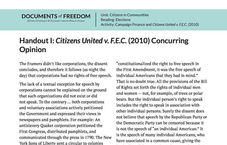 Handout I: Citizens United v. F.E.C. (2010) Concurring Opinion