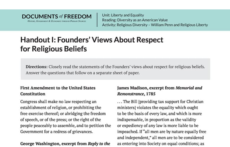 Handout I: Founders’ Views About Respect for Religious Beliefs