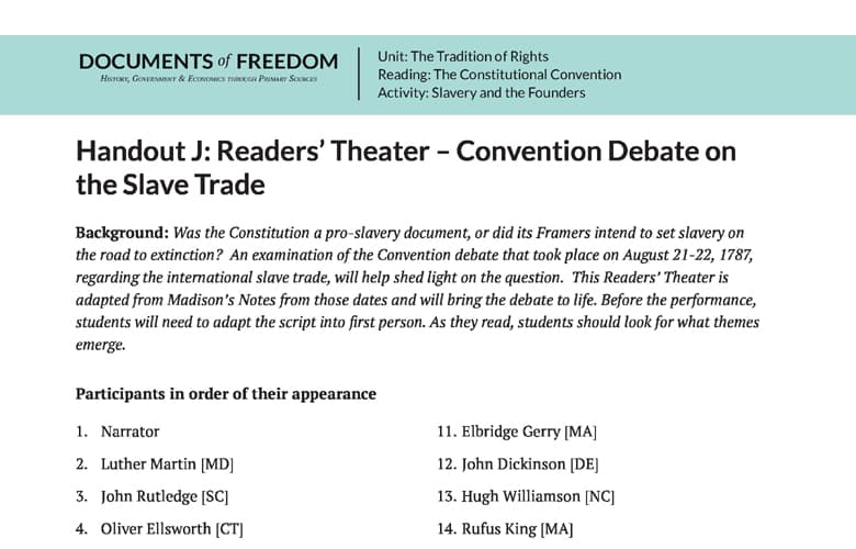 Handout J: Readers’ Theater Convention Debate on Slave Trade