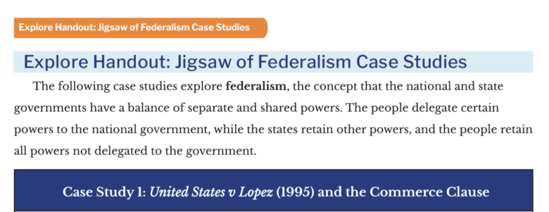 A handout to accompany the Federalism Case studies that guide students in their understanding of them.