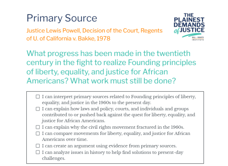 - I can interpret primary sources related to Founding principles of liberty, equality, and justice in the 1960s to the present day.
