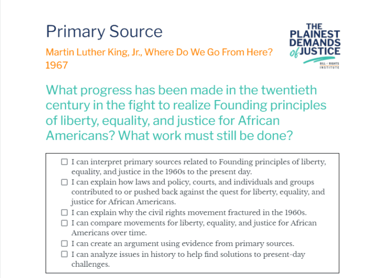 - I can interpret primary sources related to Founding principles of liberty, equality, and justice in the 1960s to the present day.