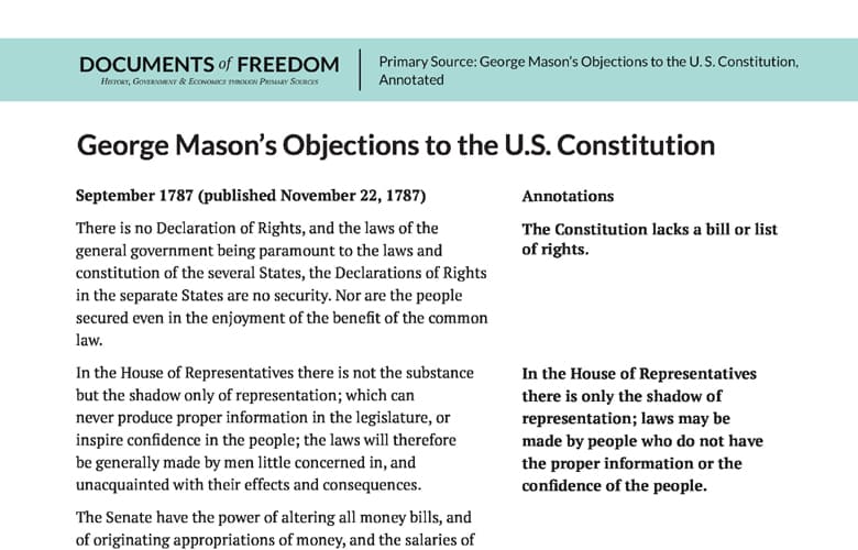 Primary Source: George Mason’s Objections to the U.S. Constitution Annotated