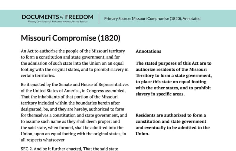 Primary Source: Missouri Compromise (1820) Annotated
