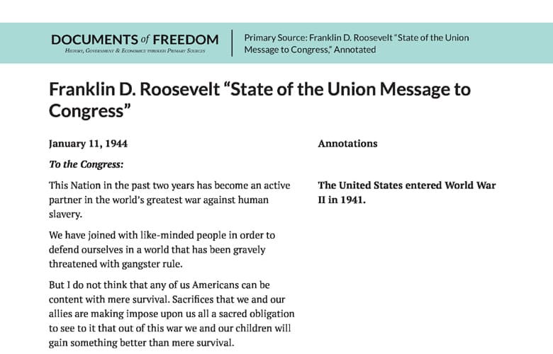 Primary Source: President Franklin D. Roosevelt’s Second Bill of Rights Annotated