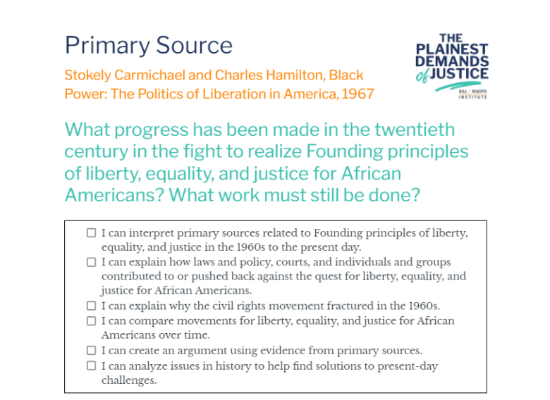 • I can interpret primary sources related to Founding principles of liberty, equality, and justice in the 1960s to the present day.