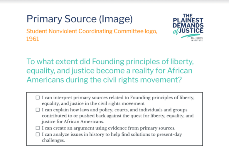 - I can interpret primary sources related to Founding principles of liberty, equality, and justice in the civil rights movement