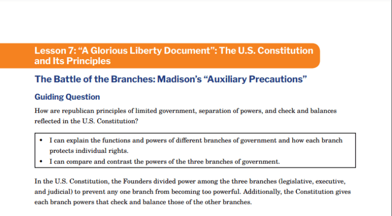 Guiding Question: How are republican principles of limited government, separation of powers, and checks and balances reflected in the U.S. Constitution?