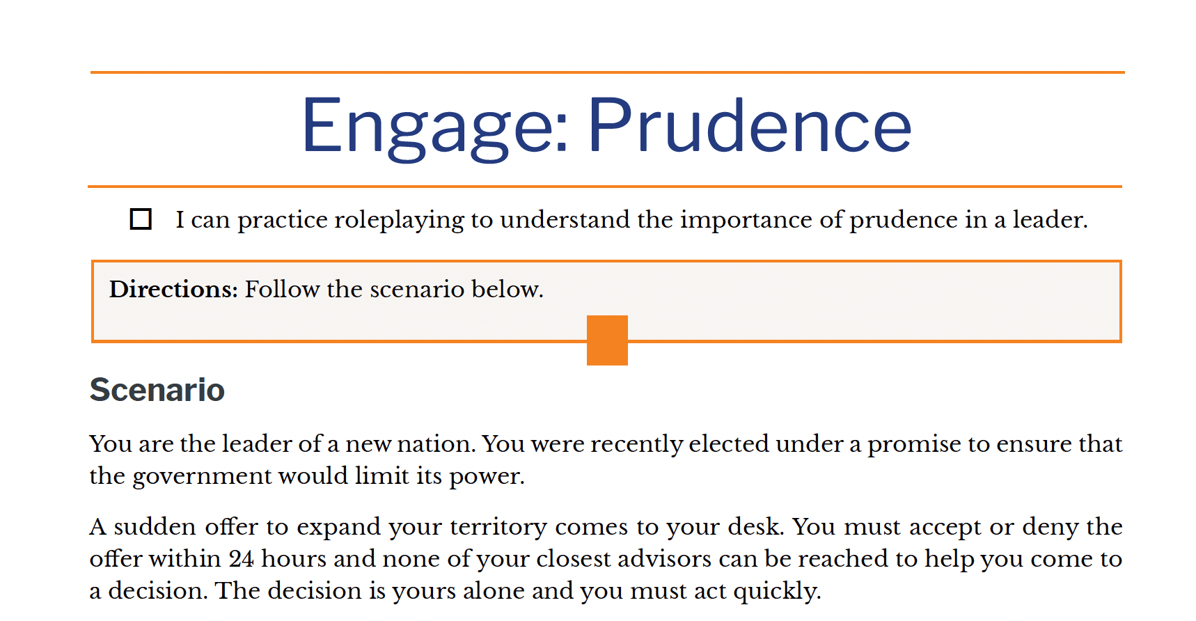 • I can practice roleplaying to understand the importance of prudence in a leader.
