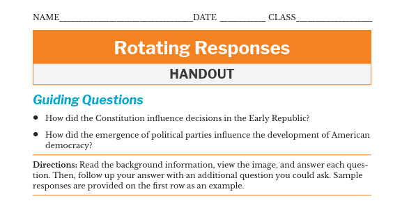 Unit 5: Early Republic DBQ Rotating Responses Handout