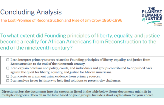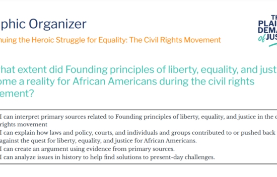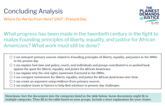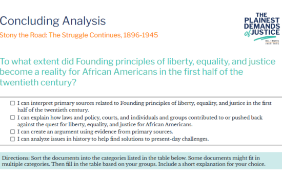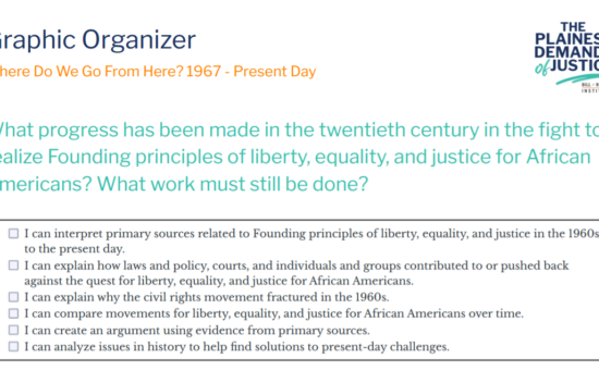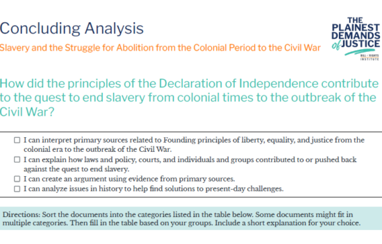 BRI's Black History Timeline follows Plainest Demands of Justice: Documents for Dialogue on the African American Experience, a social studies resource highlighting the African American experience from the colonial period to present day.