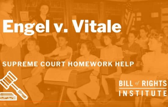 Is school-sponsored prayer in public schools a violation of the establishment clause of the First Amendment? In 1951, some New York schools began starting the day with a non-denominational prayer. This Homework Help video tells the story of the ensuing landmark Supreme Court case of Engel v. Vitale.