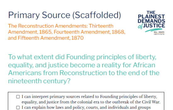 Use this Lesson once students have a strong understanding of the rights of African Americans both before and after the passing of the Thirteenth and Fourteenth Amendments. It would also be helpful for students to have read the O. O. Howard and the Freedmen’s Bureau and The Ku Klux Klan and Violence at the Polls Narratives.