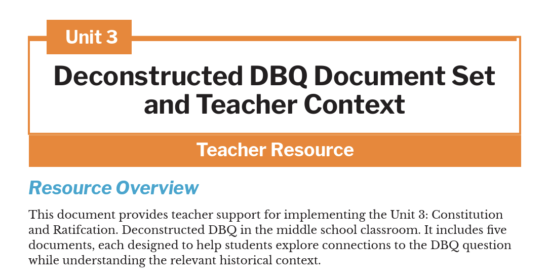 Page:Resources LibraryArrow iconCurriculum:Building a Self-Governing People: Civics & US History for Middle SchoolArrow iconUnit:Unit 3: Constitution and Ratification 1787-1791Arrow iconLesson:Unit 3: “VIEW”ing Documents Deconstructed DBQ – Mini-LessonUnit 3: Constitution and Ratification Deconstructed DBQ Skills Mini-Lesson Document Analysis