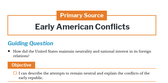LessonEarly American Conflicts2 ActivitiesDescribe the attempts to remain neutral and explain the conflicts of the early republic.