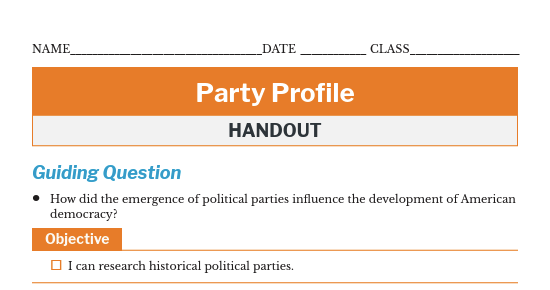 ActivityParty Profile HandoutA student activity to help them research political party platforms in the Early Republic.