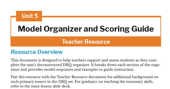 Educator ResourceUnit 5: Early Republic Model Organizer and Scoring Guide Teacher ResourceRubrics to assess the Unit 5 DBQ.